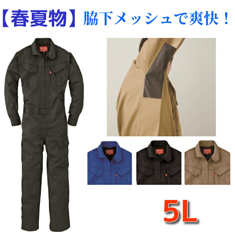 つなぎ 春夏物 メンズ 送料無料 メッシュ 作業服 長袖ツナギ オーバーオール 大きいサイズ 5L GE-628 ビッグサイズ 夏用 BIG